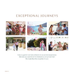 EXCEPTIONAL JOURNEYS Every suggestion we make is based on our personal experiences We make you experience the destinations, not just see them We create trips that are perfect for you 014 - 015