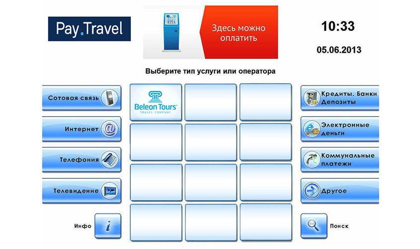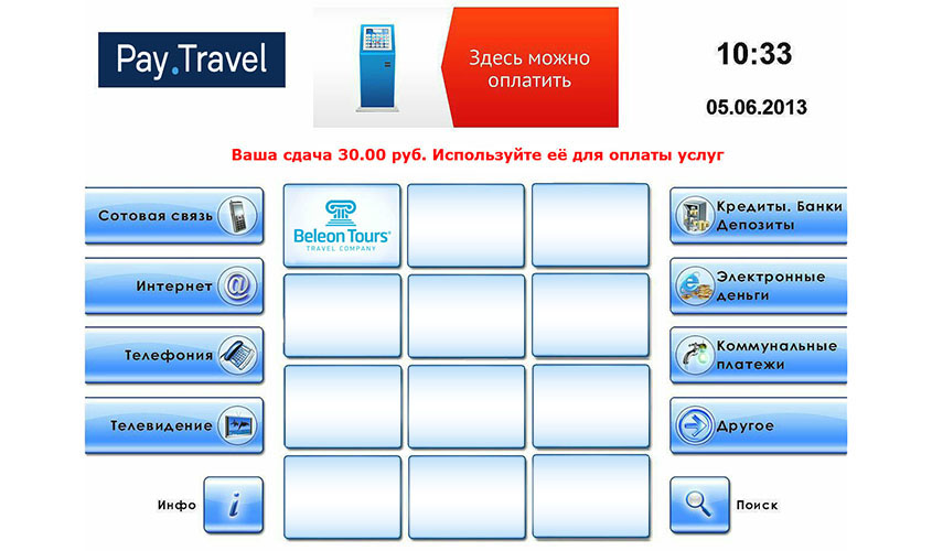 Pay.Travel – система приема платежей через платежные терминалы, которая уже успела зарекомендовать себя на рынке туристических услуг. Отныне посредством платежных терминалов Pay.Travel вы можете оплатить также и услуги Beleon Tours.