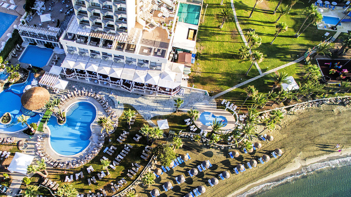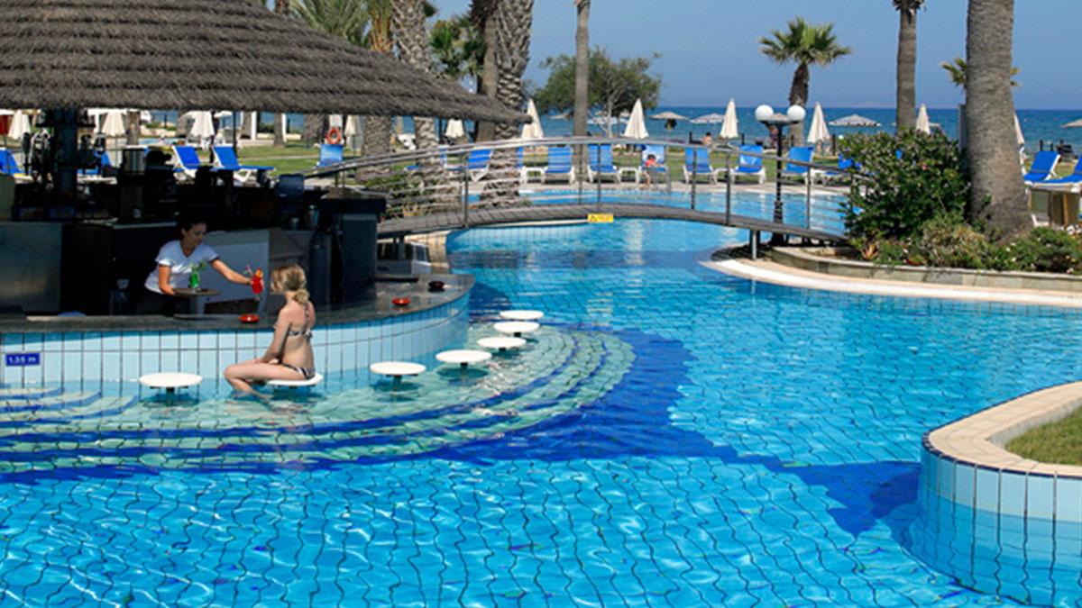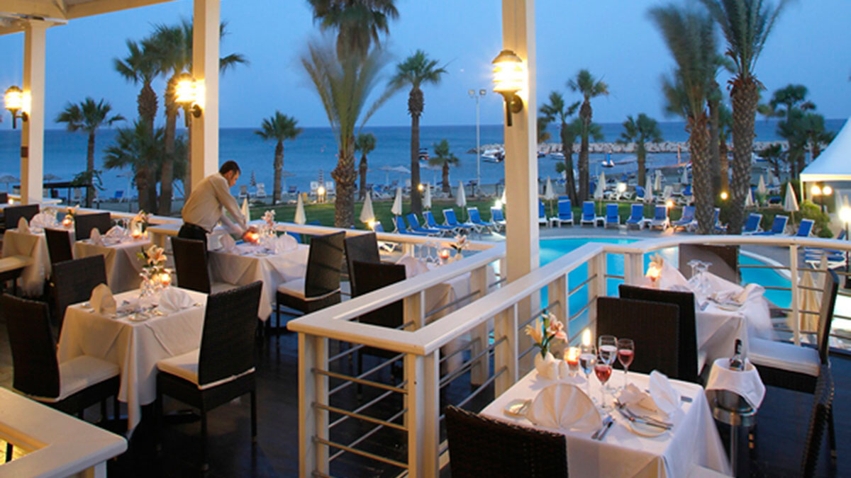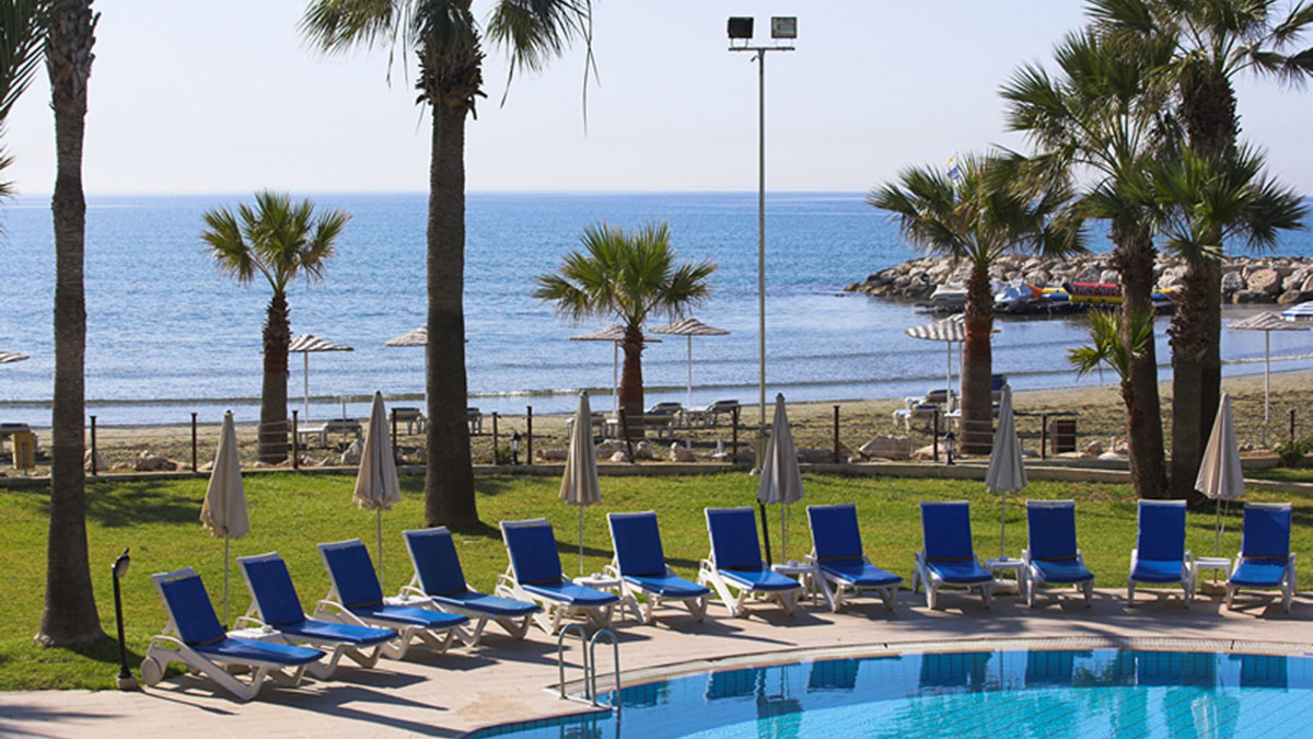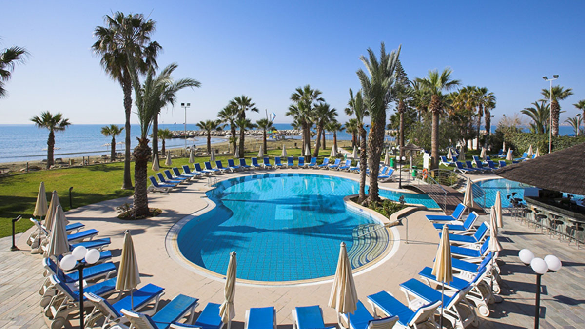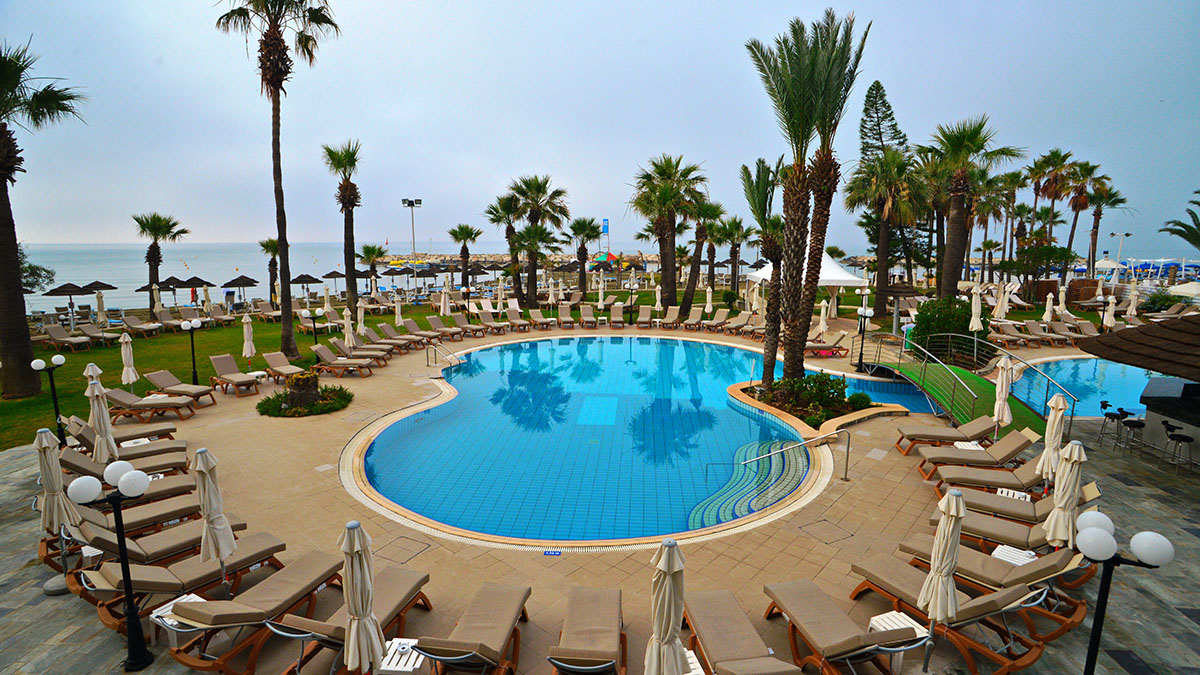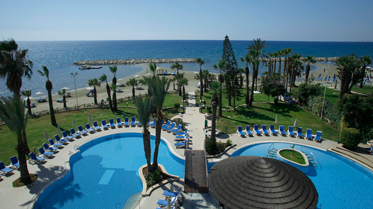 Golden Bay Beach Hotel - престижный пятизвездочный отель. Расположен на окраине города Ларнака, в 10 км. от центра города. Одно из достоинств это роскошный песчаный пляж и ласковое теплое море.