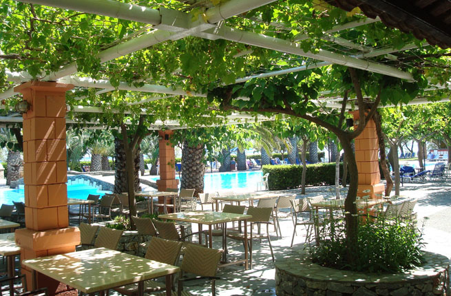 Напитки: 10.00-18.00 (Горячие напитки: фильтрованный кофе, греческий кофе, чай, эспрессо, и капучино; безалкогольные напитки: безалкогольные напитки из аппарата пост-микс, фруктовые соки из пакетов, кофе фраппе, холодный чай, сода, гренадин и мятный сироп, вода; алкогольные напитки местных производителей: узо, раки, виски, джин, ром, водка, текила, игристое вино, Vermouth, коктейли, приготовленные из местных алкогольных напитков, пиво местных производителей, разливное вино местных производителей)