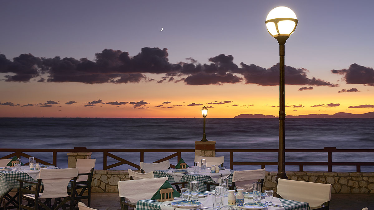 Меню из 3х блюд (закуски или салат, основное блюдо, десерт).Эксклюзивные сорта мяса и морепродуктов не включены. Включенные напитки: греческое пиво, вино, вода, безалкогольные напитки, концентрированные соки и, свежие апельсиновые соки, Метакса, узо, раки. (обслуживание)