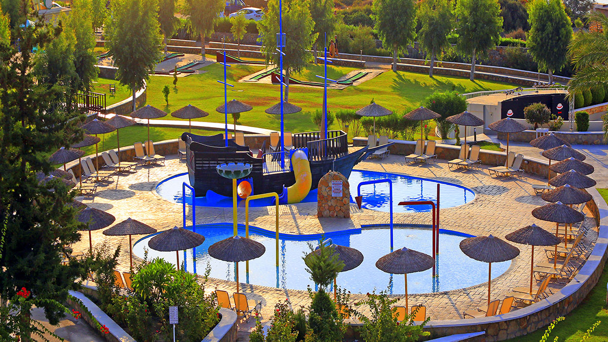 Детский бассейн, бассейн с пиратским кораблем и фонтанами, игровая площадка, Детский клуб и клуб для подростков (от 4 до 12 лет, и от 12 + / работает с 10:00 до 13:00 и с 15:00 до 17:00, 6 дней в неделю)