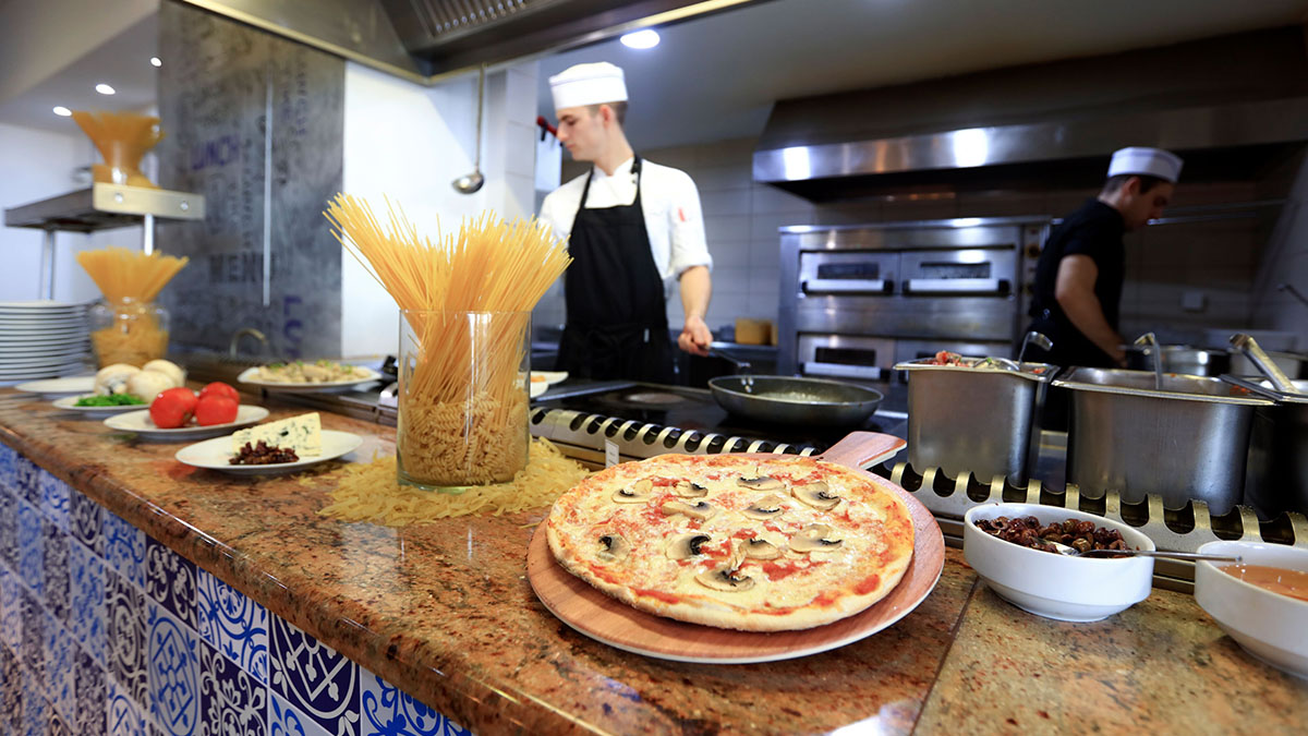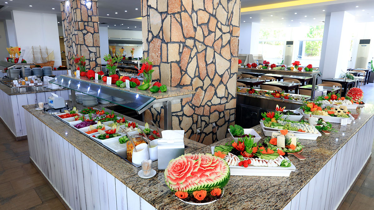 Шведский стол предлагает разнообразные блюда местной и международной кухни.