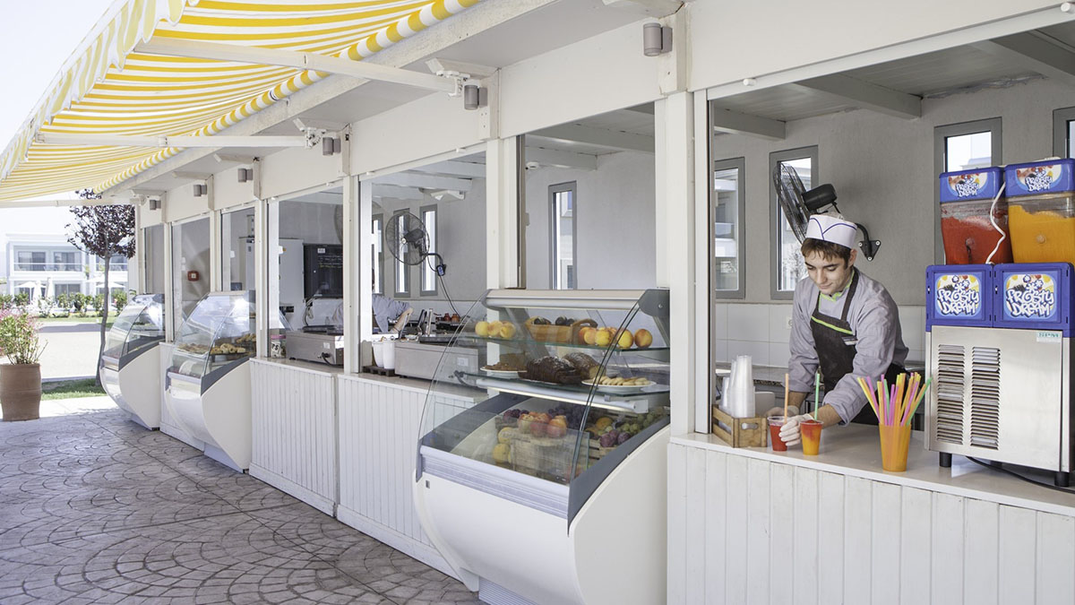 Часы обслуживания: 10.00-18.00 Крепы, вафли, мороженое, бутерброды, легкие закуски и др.