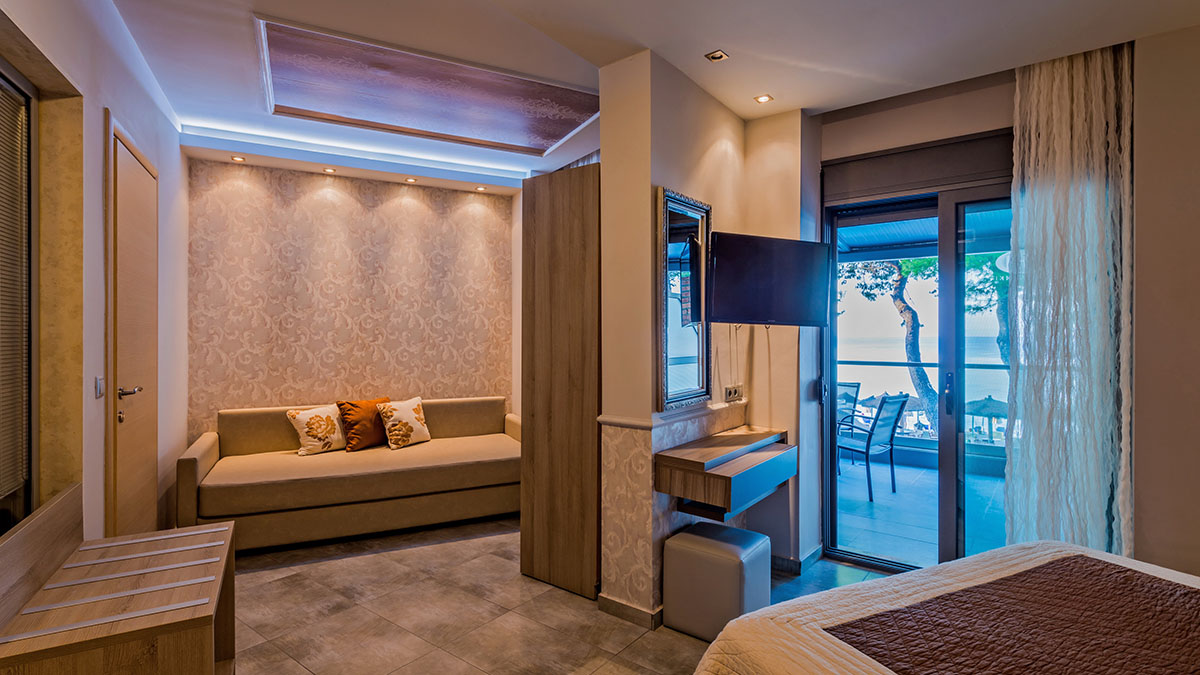 Flegra beach - комплекс апартаментов, построенный в современном стиле в 2014 году. Отель идеально расположен на полуострове Кассандра, Халкидики, прямо на берегу моря, в 250 м от центра деревни Певкохори и в 100 км от аэропорта г. Салоники. Бутик-отель предлагает различные варианты размещения, каждый из которых может похвастаться своим уникальным дизайном. Апартаменты отлично подходят как для семейных каникул, так и для проведения романтических выходных. На территории отеля расположен бар-ресторан на пляже, где за дополнительную плату гости могут насладиться кофе или коктейлями, отведать разнообразные закуски и деликатесы, а также заказать завтрак или ужин.