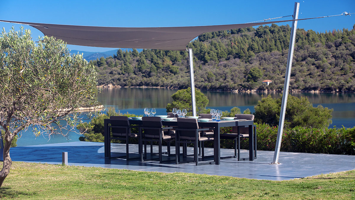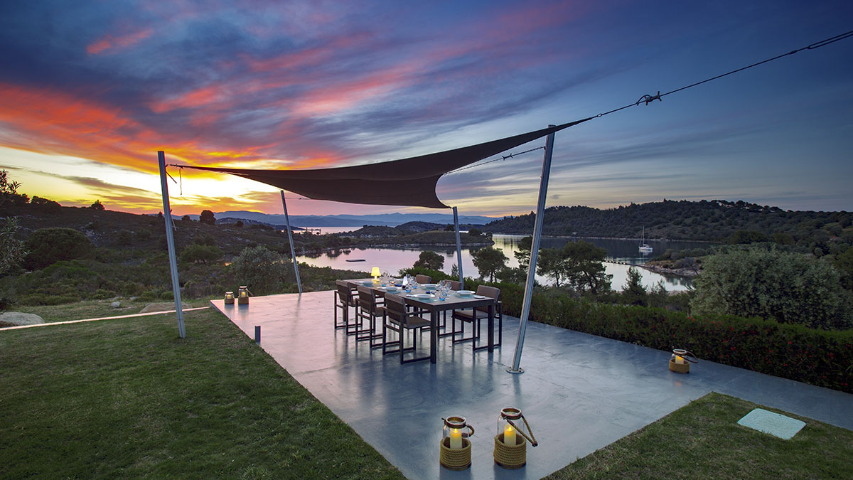 Виллы расположены в новом секретном эко-рае на втором из трех полуостровов Халкидики, в Греции, на севере Эгейского моря. Остров Диапорос находится напротив Вурвуру и всего в 10 км от муниципалитета Агиос Николаос в Ситонии. Площадь занимает 3,2 квадратных километра с большой естественной бухтой, которая составляет 700 метров в длину и служит местом причала для лодок. Залив заканчивается мелководьями, которые всегда остаются теплыми и поэтому пригодны для пловцов. Большая часть острова покрыта сосновым лесом, что делает его уникальным сочетанием прекрасных береговых линий и чистой природы.