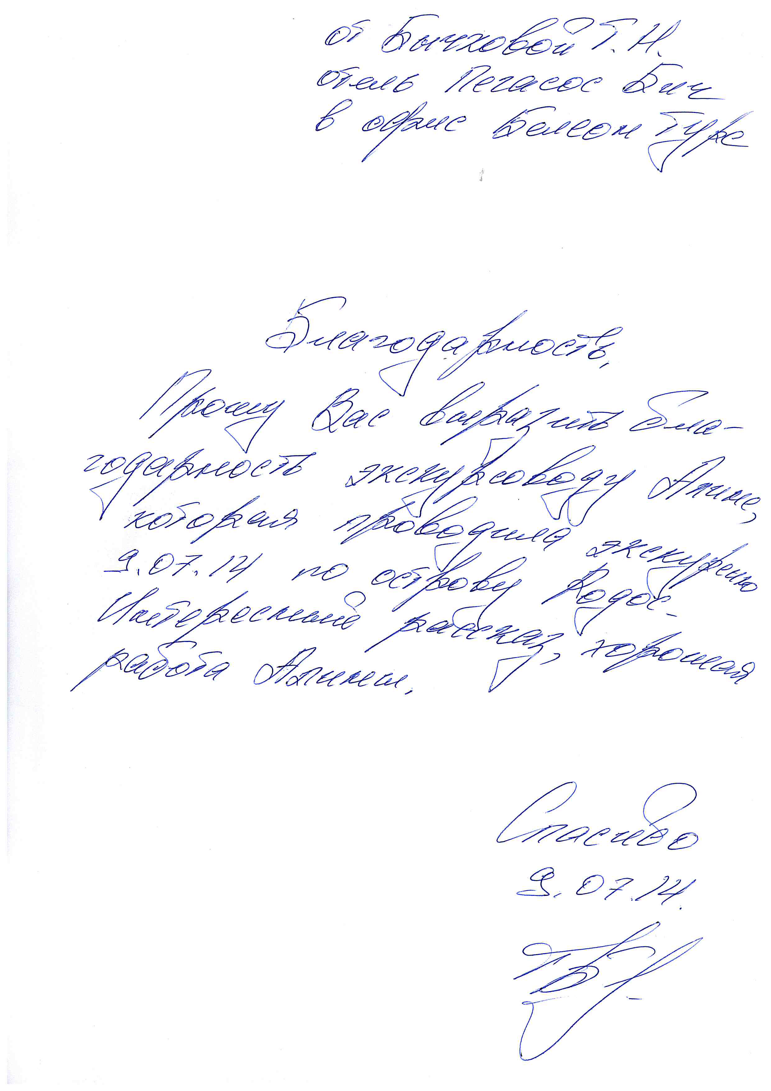 Благодарность экскурсоводу Алине