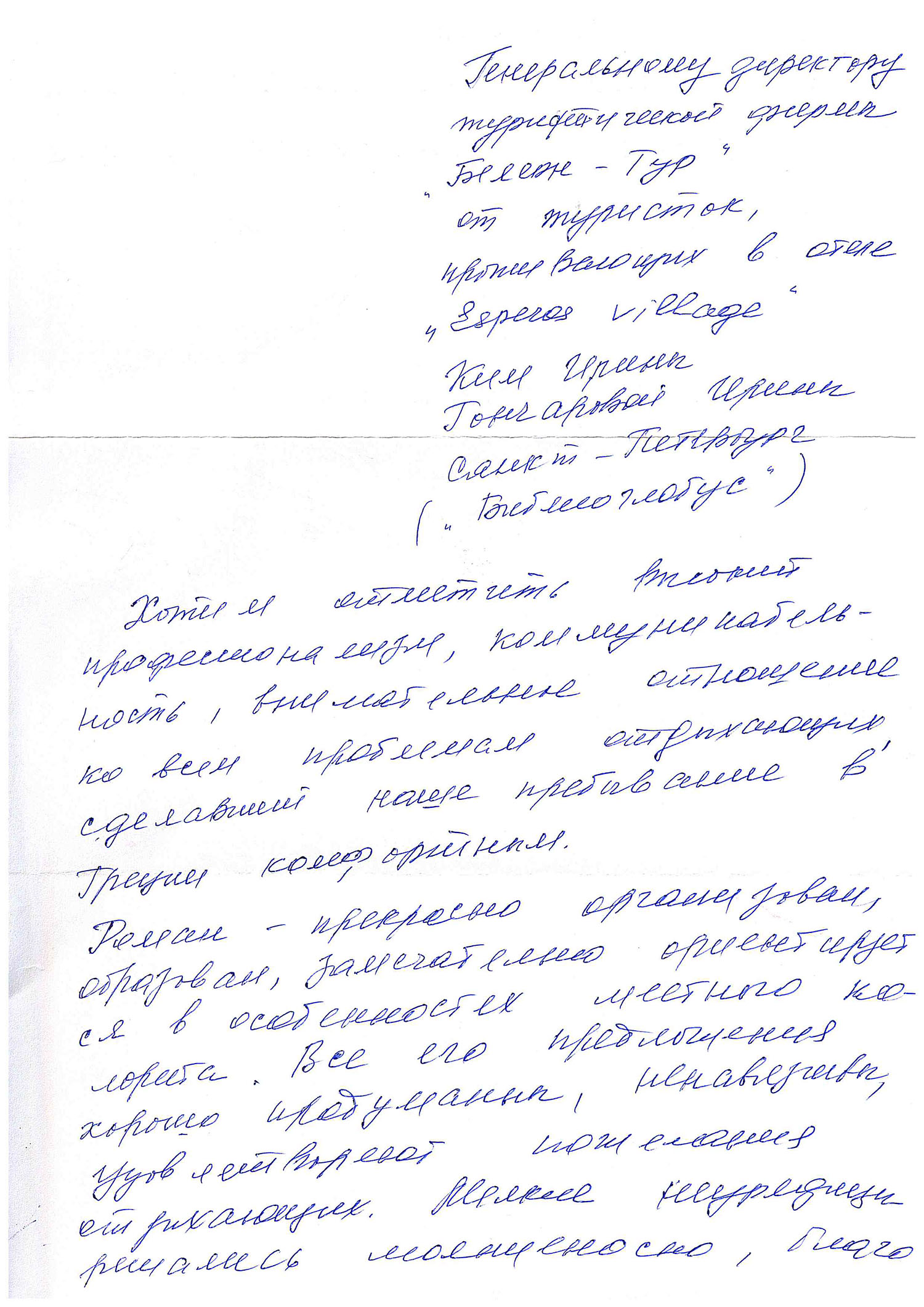 Генеральному директору турфирмы “Beleon Tours”.