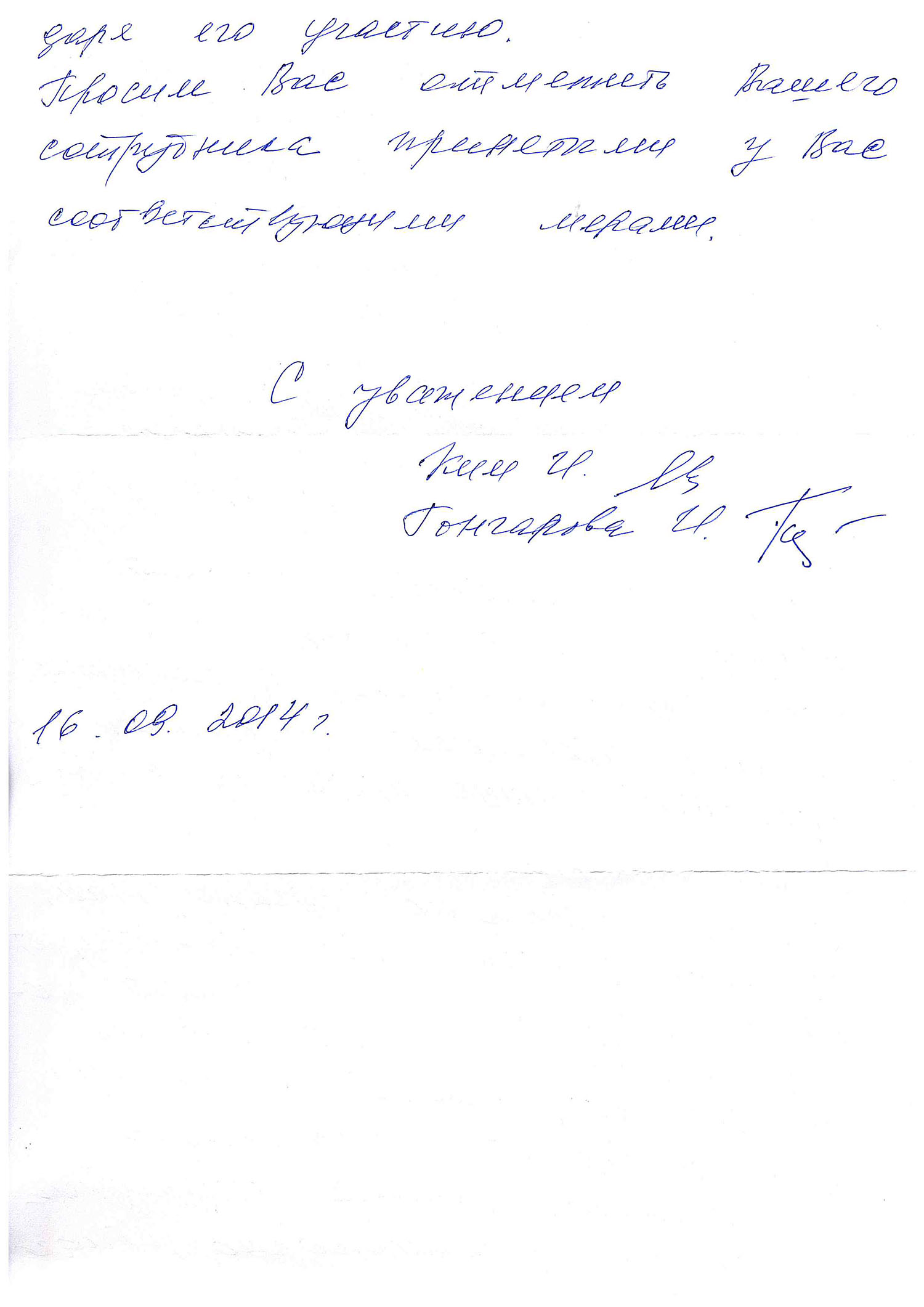 Просим Вас отметить Вашего сотрудника принятыми у Вас соответствующими мерами.